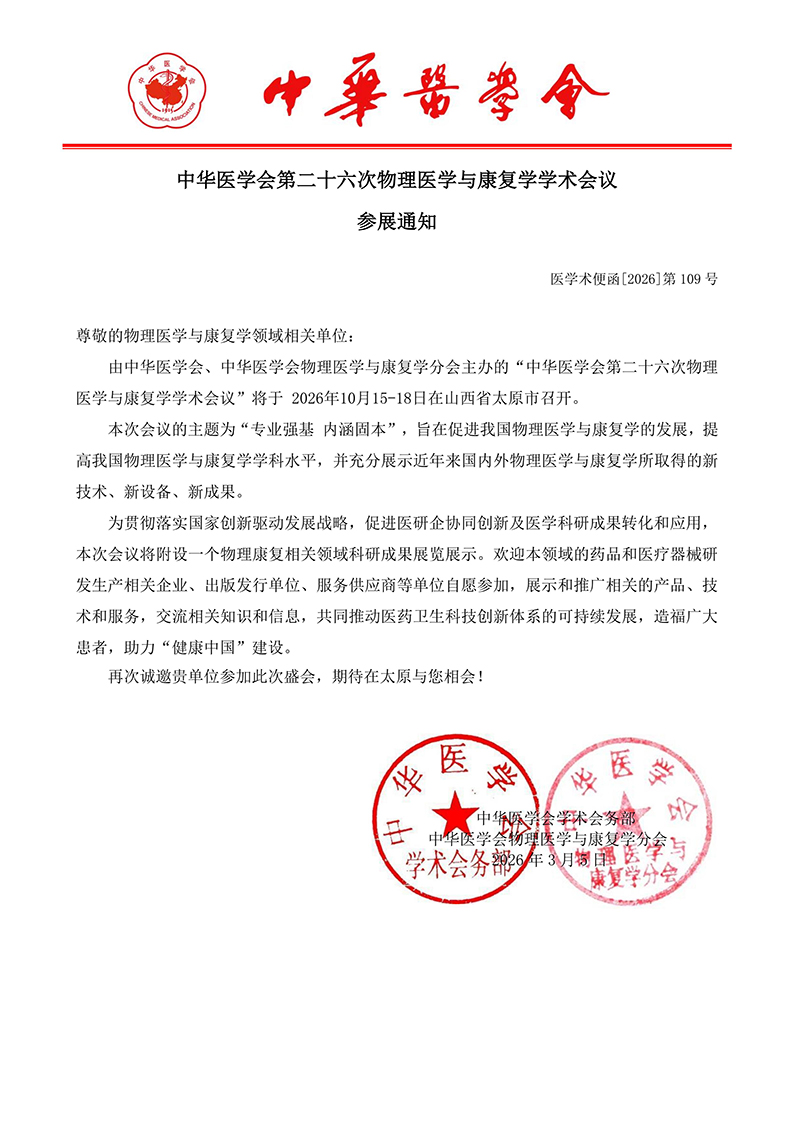 通知—关于举办“2026中国康复医学会综合学术年会暨康复医疗产业博览会”的通知(第一轮)